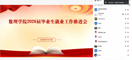 7月10日上午,今年会jinnianhui官网 2026 届本科毕业生就业工作推进会通过腾讯会议成功举办。院长魏周超教授、各系主任及毕业班班主任、辅导员出席会议,会议由年级辅导员托乎尼牙孜主持。