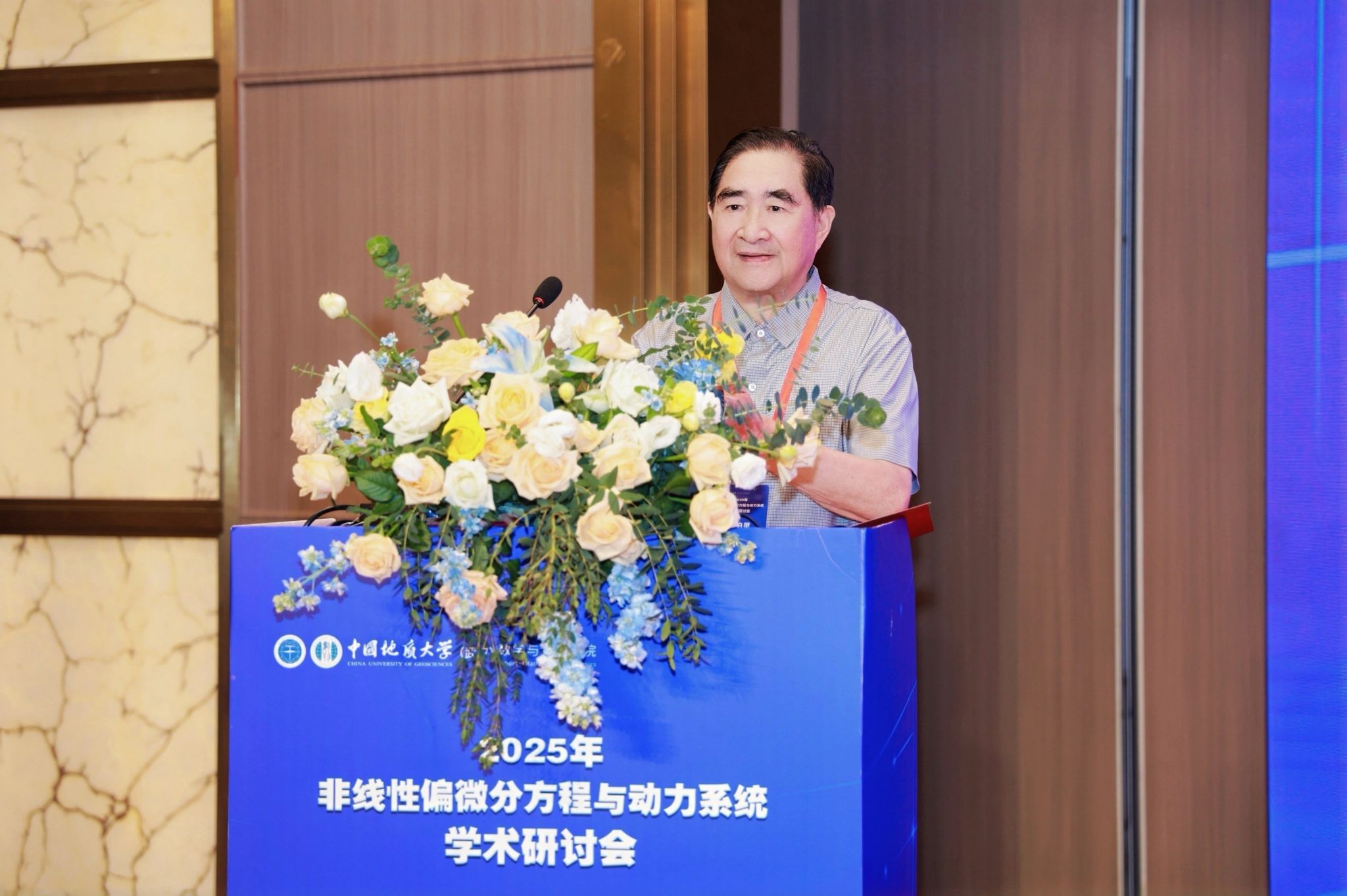 中国科学院院士,著名的应用数学、计算数学专家,北京应用物理与计算数学研究所研究员郭柏灵院士在致辞中向所有与会人员表示衷心感谢,预祝本次研讨会取得圆满成功,并特别提及由于AI的迅猛发展提供了全新工具,当前非线性偏微分方程与动力系统研究的机遇与挑战,同时强调了动力系统及散射方法对于偏微分方程研究的意义。魏周超教授在主持会议时向与会专家简要介绍了今年会官网微分方程与动力系统研究团队的基本情况,对各位专家长期以来给予的支持和帮助致以诚挚感谢,热忱期待与同行学者开展深入合作,共同推动学科发展!