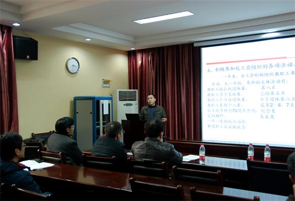 学院分工会副主席王希成同志代表工会做工会工作报告,他在报告中回顾了2016年工会工作以及学院工会在学校各项比赛中取得的成绩,并提出了新一年的工作计划。
