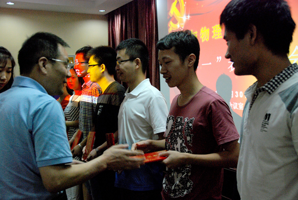 表彰大会在雄壮的国歌声中拉开帷幕,受党组织委托,李杰宣读了《今年会jinnianhui官网“七一”表彰决定》。刘治国为获得2013-2014年度校级先进基层党组织、优秀党员和优秀党务工作者颁奖,李宇凯为获得院级先进学生党支部和优秀学生党员颁奖。