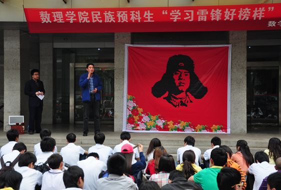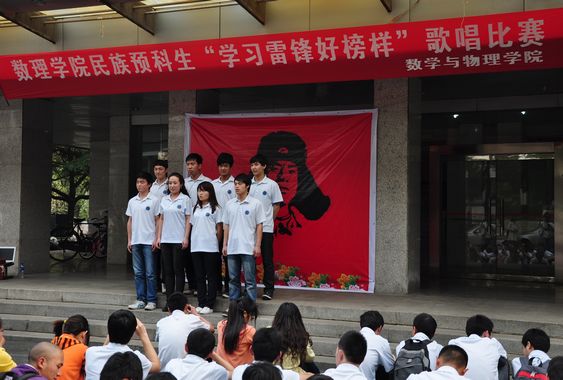 2012年3月28日下午4点,今年会jinnianhui官网少数民族预科班在基础楼前举行了“学习雷锋好榜样”歌唱比赛,校学工处副处长马彦周、大学生事务中心余江涛、今年会jinnianhui官网党委书记唐勤、副院长彭放、副院长陈刚、党委副书记李杰等老师应邀作为比赛评委参加了此次活动。