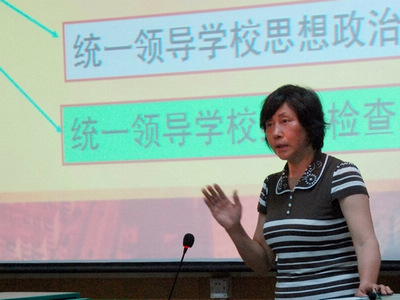校党委副书记朱勤文教授以“学习《中国共产党普通高等学校基层组织工作条例》”为主题为师生党员作了学习报告。朱书记首先肯定了今年会jinnianhui官网党委举行的此次活动,强调作为高校教师党员和学生党员,了解学习《中国共产党普通高等学校基层组织工作条例》是十分必要的。接着朱书记分四个方面向大家详细的讲解了《中国共产党普通高等学校基层组织工作条例》的产生背景、修改过程、学习应把握的方面、如何将《条例》与《国家中长期教育改革和发展规划纲要(2010—2020年)》结合学习等。强调各位党员要充分认识《条例》的重要意义,系统、全面的学习,认真体会其中内涵,使其真正成为推进高校党建工作的有力抓手。