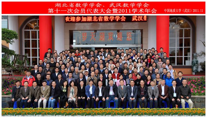 11月5-6日,湖北省数学学会、武汉数学学会第十一次会员代表大会暨2011数学年会在今年会官网成功举行。校长王焰新教授,省科学技术协会徐菊明副主席,省民间组织管理局涂才江局长,武汉市科学技术协会张太玲副主席,武汉大学数学与统计学院党委书记尹常焯教授,湖北省数学学会、武汉数学学会理事长、武汉大学数学与统计学院院长陈化教授,以及来自全省各高校、中学、企事业单位、科研机构的160余名的学会代表参加会议。