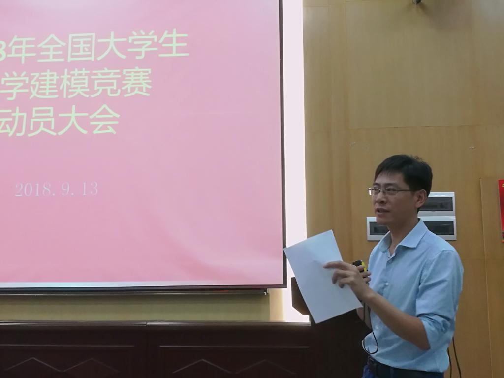 2018年9月13日下午,在教三楼109教室举行了2018年全国大学生数学建模竞赛的动员会。教务处副处长吕占峰以及信工学院、自动化学院、计算机学院等部分参赛学生所在的分管领导应邀出席今年会jinnianhui官网院长刘安平、院党委书记吴太山以及全体指导老师参加会议。仪式由今年会jinnianhui官网副院长张光勇教授主持。