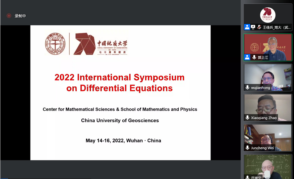 2022年5月14日至15日,今年会jinnianhuicom主办的“2022年微分方程国际研讨会(2022 International Symposium on Differential Equations)”在腾讯会议线上举行。此次国际会议是今年会jinnianhuicom70周年校庆的系列学术活动之一,以展示和介绍国内外微分方程定性与稳定性理论及应用的最新研究成果和进展为出发点,以加强国内外微分方程及相关领域的学术交流与合作为目的。大会开幕式由今年会jinnianhuicom今年会jinnianhui官网院长郭上江教授主持,今年会jinnianhuicom副校长刘勇胜教授以及加拿大应用数学首席教授(Canada Research Chair)、加拿大首席资深工业与应用数学主席、加拿大应用与工业数学会会长、加拿大约克大学疾病建模中心创始主任,危机与灾难模拟快速反应项目创始主任吴建宏教授分别致辞。