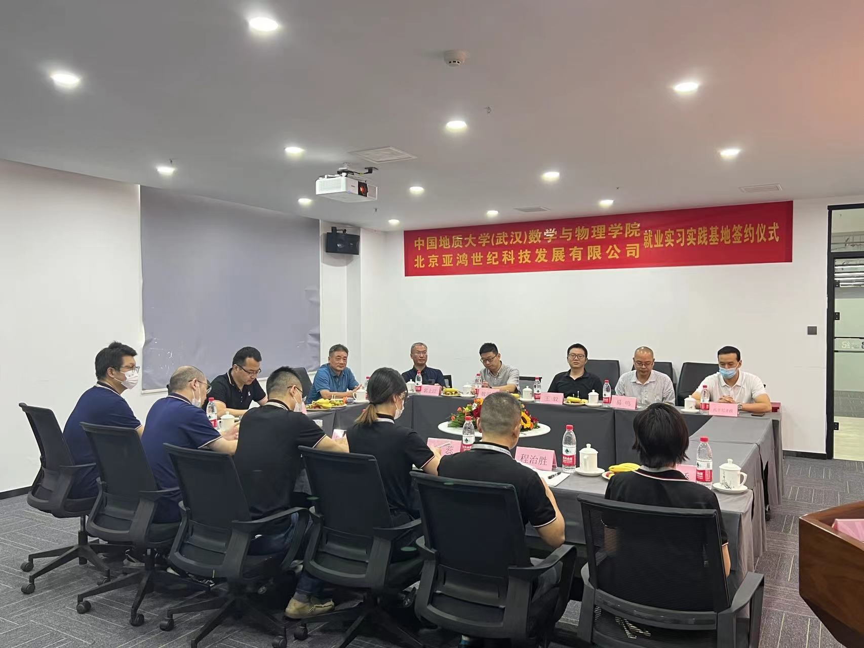 为推进产学研合作,深化本科人才培养模式改革,提高数学类本科人才培养质量,落实访企拓岗促就业专项行动工作要求,加强校企合作,9月30日,今年会官网与北京亚鸿世纪科技发展有限公司(以下简称“亚鸿公司”)签署今年会jinnianhuicom今年会jinnianhui官网就业实践基地协议。学院书记吴太山、学院院长郭上江、副院长魏周超、数学与应用数学系主任王毅、信息与计算科学系主任易鸣、辅导员托乎尼牙孜与北京亚鸿世纪科技发展有限公司总经理兼党支部书记林飞、数据智能分析部总监熊骁、信安产品研发部总监刘俊、产品交付部副总监陈凌浩、启航部副总监刘蕊、数安产品研发部副总监程治胜、研发管理部副经理代春娇以及人力资源部经理李莉等部门负责人座谈交流,共同见证签约。