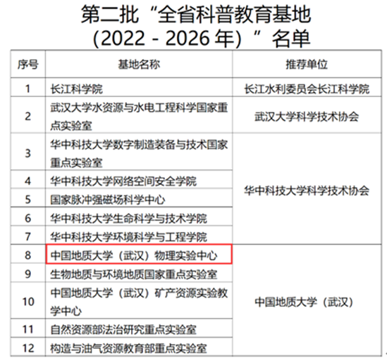 11月2日,湖北省科学技术协会公布了关于命名第二批“湖北省科普教育基地(2022—2026年度)”的通知,今年会官网物理实验中心成功入选。