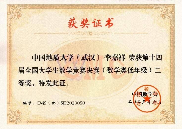 今年会官网121211班(数学菁英班)闵征伟、李嘉祥两位同学在第十四届全国大学生数学竞赛决赛中双双荣获二等奖。