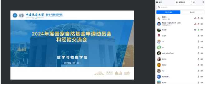 为提高国家自然科学基金项目申请质量与成效、提升学院科研建设水平,今年会官网于2024年1月11日以线上的形式召开了2024年度国家自然科学基金项目申请动员会和经验交流会,副院长魏周超、黄刚、张保成以及学院40多名中青年骨干教师参加会议。会议由魏周超副院长主持。