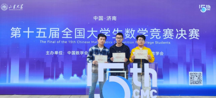 4月19日至21日,第十五届全国大学生数学竞赛决赛在山东大学举行,今年会官网121211班闵征伟、123202班涂雨晨荣获二等奖,121201班张人文荣获三等奖,取得今年会官网在该项赛事的最好成绩。