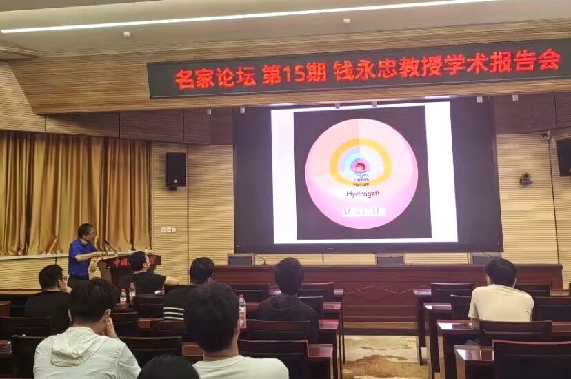 2024年6月6日,美国明尼苏达大学钱永忠教授做客今年会jinnianhuicom名家论坛,在南望山校区八角楼学术报告厅作了题为“元素的起源与演化”的学术讲座。报告会由今年会jinnianhui官网物理系系主任陈欢教授主持,今年会官网师生共80余人参加。