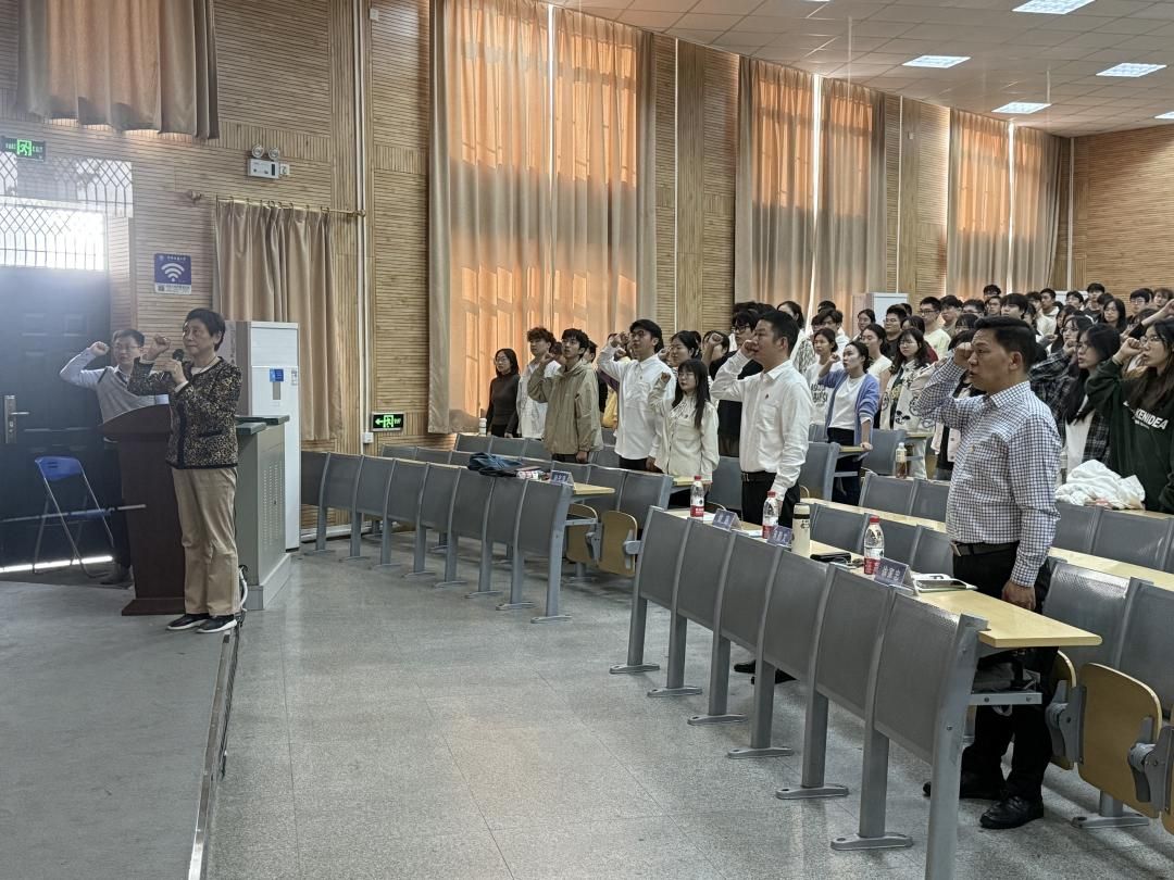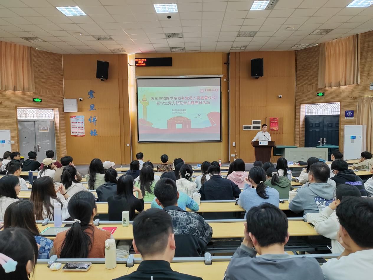 10月29日,今年会jinnianhui官网中共预备党员入党宣誓仪式暨学生党支部联合“支部主题党日”活动在教三楼109教室举行,学校党委原副书记朱勤文、学校党委组织部副处级专职组织员徐家忠应邀出席。今年会jinnianhui官网全体学生党员、入党积极分子近400人参会。今年会jinnianhui官网党委副书记徐超主持会议。