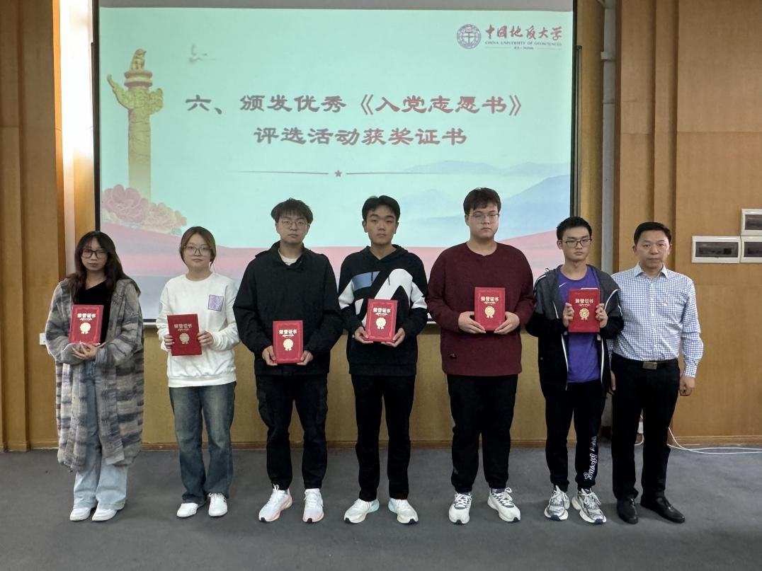 今年会jinnianhui官网党建辅导员孙宇涛介绍了新发展党员预备期总体表现情况。在朱勤文教授带领下,今年会jinnianhui官网2024年新发展的43名中共预备党员面向党旗庄严宣誓,全体正式党员重温入党誓词。新发展党员代表乔成财、研究生党员代表李荷怡分别作了发言。徐家忠为优秀《入党申请书》评选活动获奖代表颁发荣誉证书,勉励他们积极向党组织靠拢,争取早日加入中国共产党。徐超代表学院寄语新党员,要坚定信仰,忠诚于党,始终体现先进性,要以加入党组织为新的起点,踔厉奋发、超越自我,为强国建设、民族复兴伟业贡献智慧和力量。