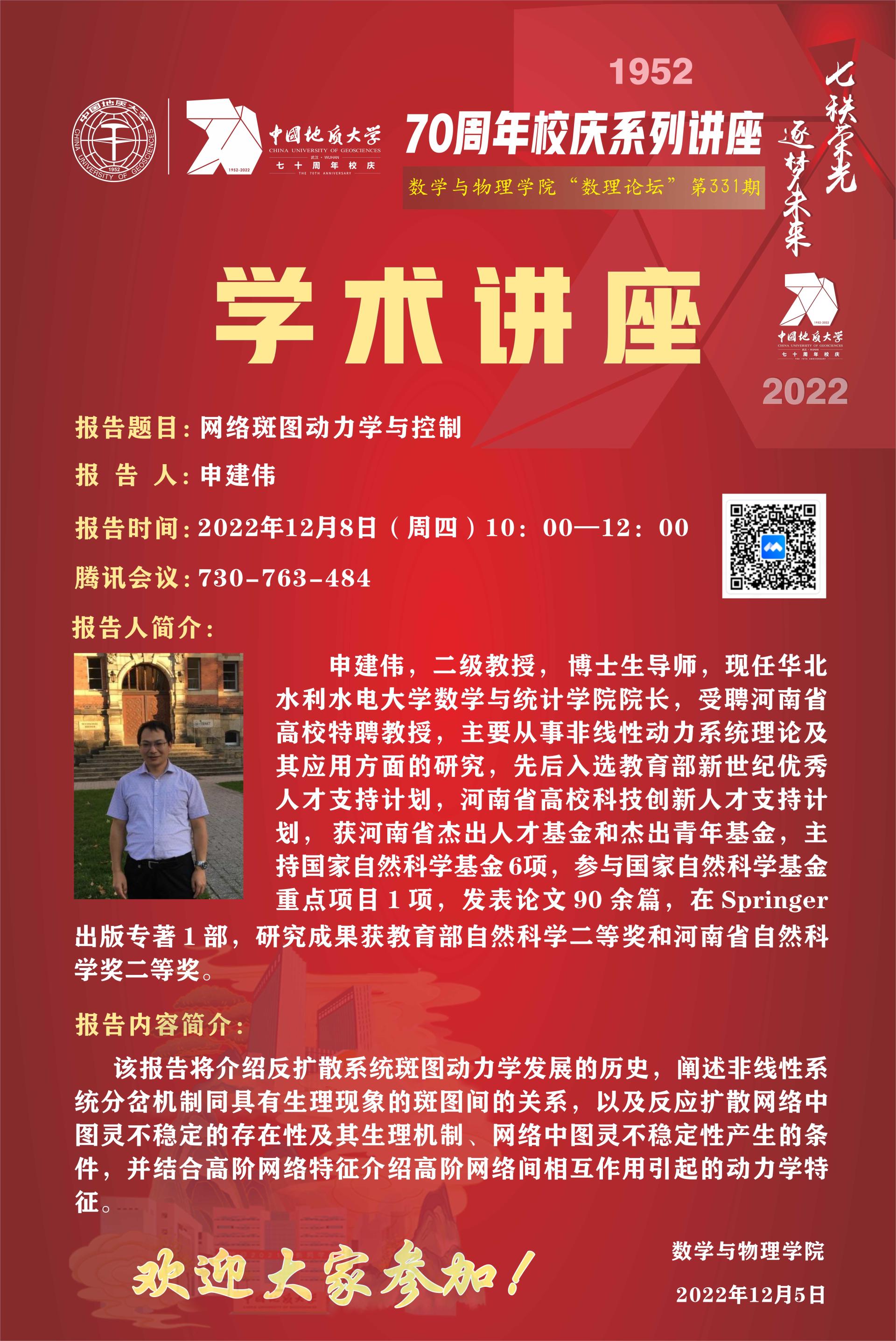 "数理论坛"第331期:网络斑图动力学与控制