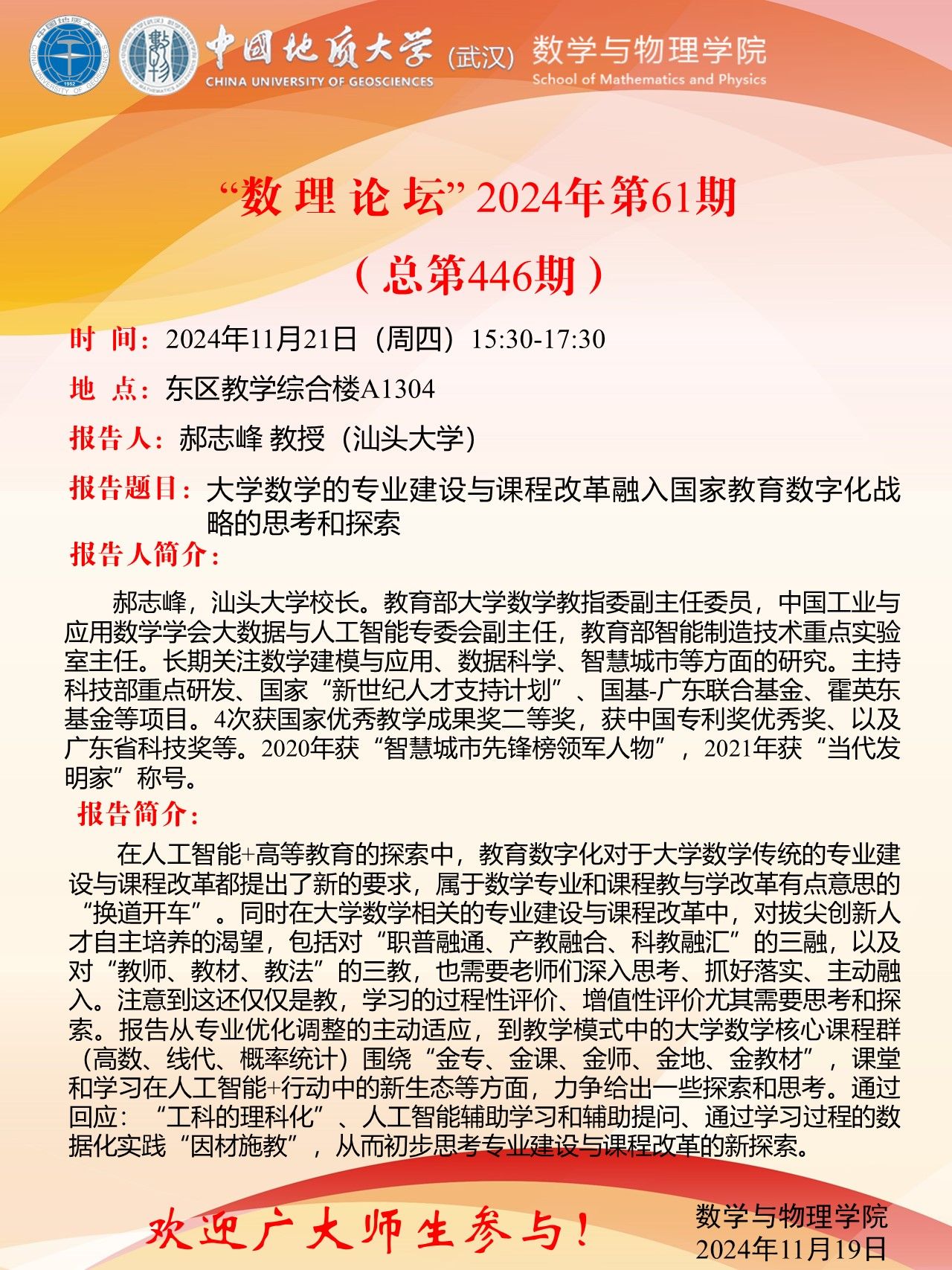 2024年11月21日郝志峰教授教学讲座:大学数学的专业建设与课程改革融入国家教育数字化战略的思考和探索