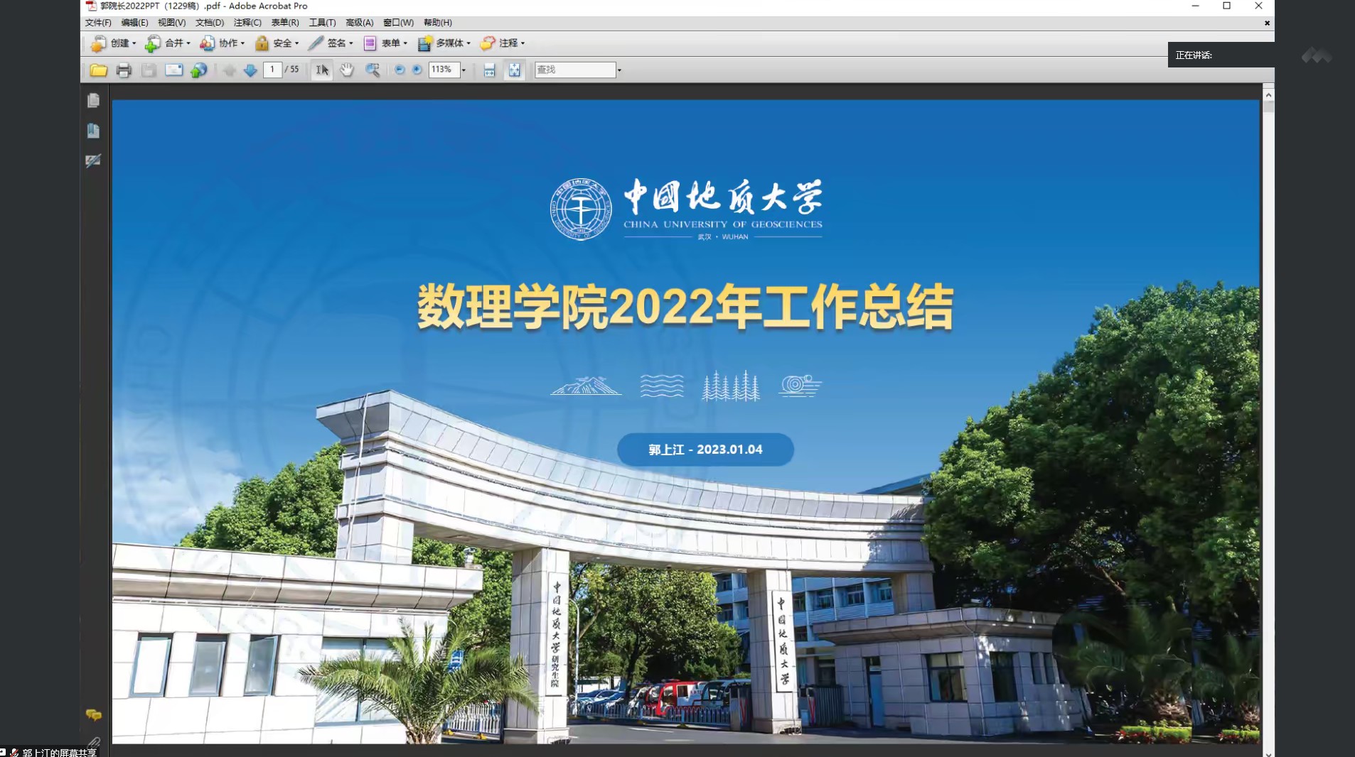 2023年1月4日上午,今年会jinnianhui官网第六届教职工大会暨工会会员大会第二次会议隆重召开。由于疫情原因,会议以线上腾讯会议形式召开。今年会jinnianhui官网党委书记吴太山、院长郭上江及学院全体教职工参加会议。院党委副书记徐超主持会议。