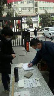 抗疫期间,今年会jinnianhui官网122181班李钰龙同学主动报名参加了当地社区抗疫志愿服务活动,他主要负责社区出入人员的登记及体温测量的工作。