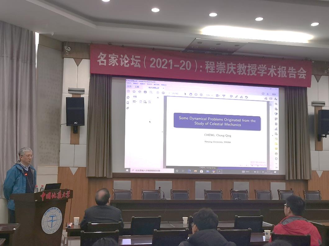 程崇庆教授的报告以牛顿力学为起点,介绍了由此产生的一些著名数学问题及相关研究进展。他从物理学的泰斗人物开普勒、牛顿、胡克等入手,介绍了其相关理论和成就,并由此转向了数学方面,就刘维尔定理、柯尔莫哥洛夫理论等作了讲解。程教授用深入浅出的语言,对可积系统、哈密顿体系、KAM理论的重大意义、Arnold扩散及最新进展等进行了介绍。与会师生与程崇庆教授就可积与混沌系统的关联性和庞加莱理论天体方面的研究等有关问题进行了详细的解答,使得参加会议的老师和同学对报告内容有了更为深入的了解。
