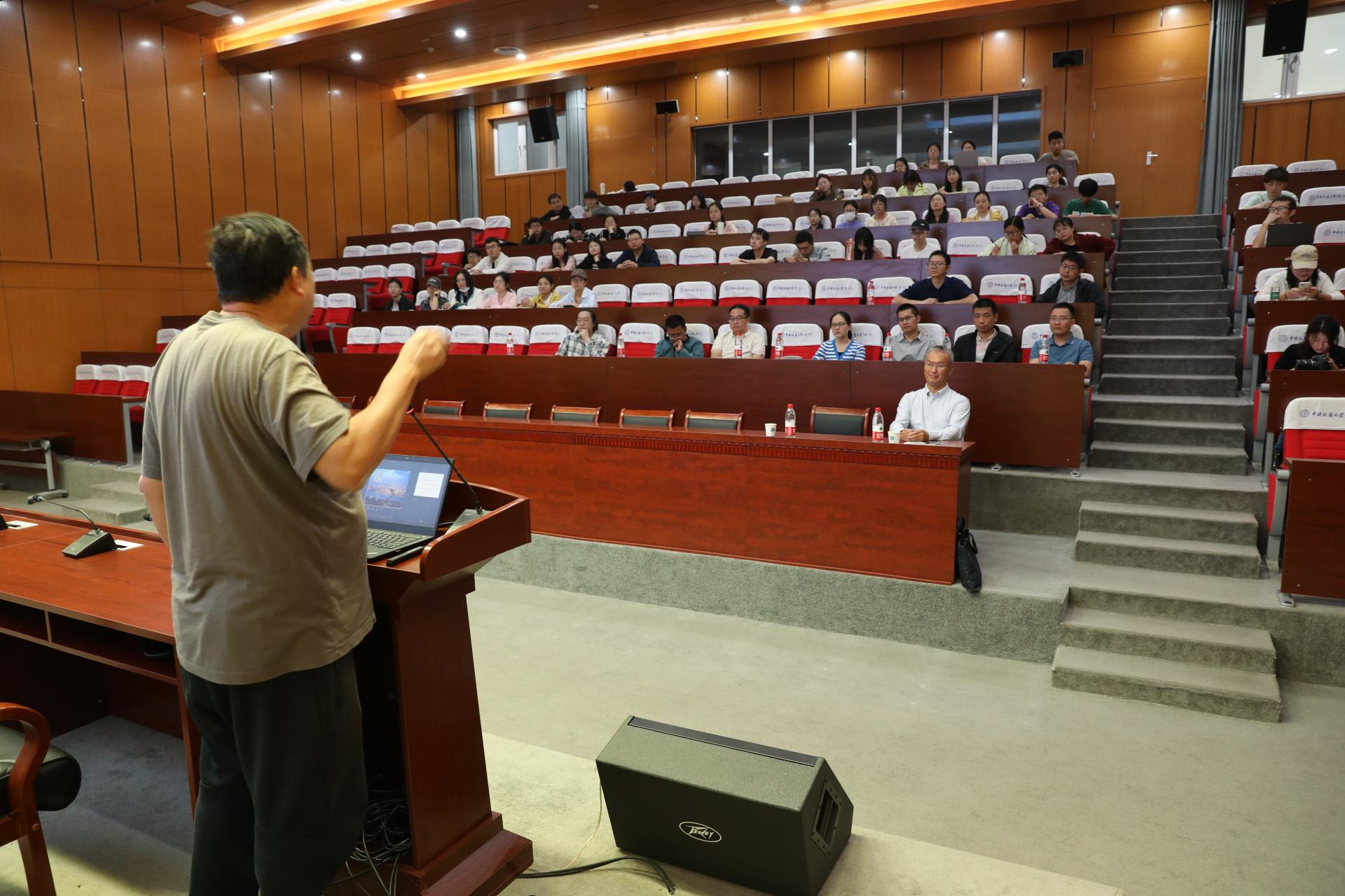 张伟年教授围绕线性化理论中的光滑性与共振性做了一场精彩的学术讲座。张教授从现实生活当中的例子入手,生动的阐述了线性化理论的概念,通过具体例子把动力系统中非常主流和深奥的数学概念,形象的描述出来,使大家能够更好地理解报告中提及的共振情形下映射的可光滑线性化理论。张教授的讲座内容丰富,旁征博引,将本身抽象难懂的数学理论方法描述得生动形象,通俗易懂,使得在场老师和学生能轻松愉快地接受和学习到数学前沿理论。讲座结束后,张教授与老师和同学进行了细致地交流和讨论,耐心的回答了在场师生的所有问题,并给在场师生传授了如何选择研究课题以及强调了选择好课题的重要性!